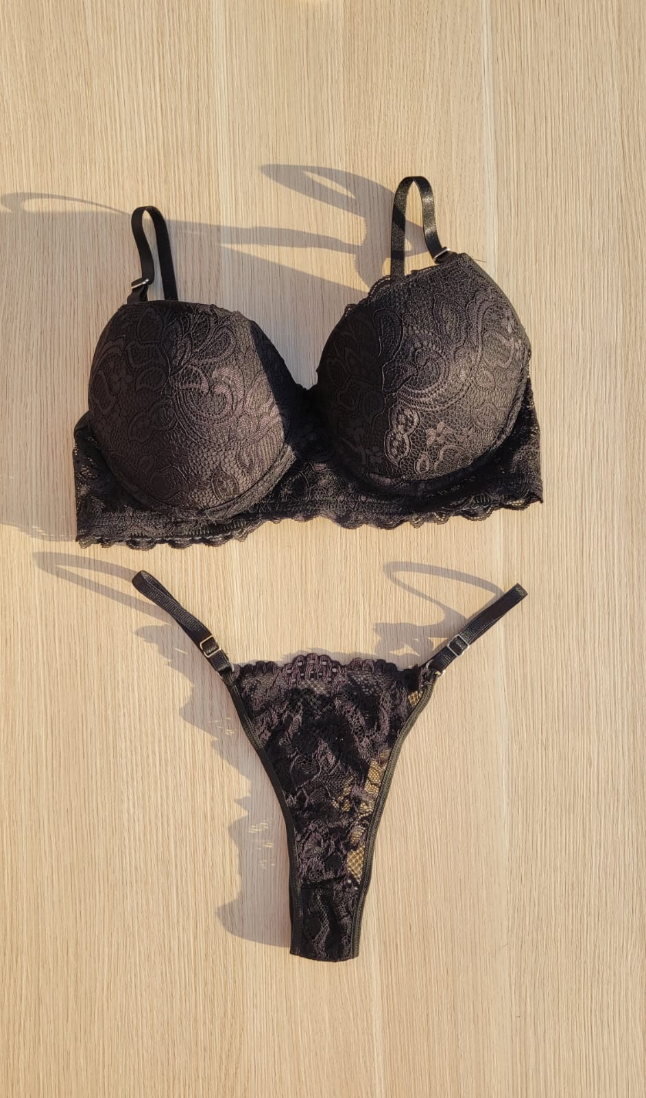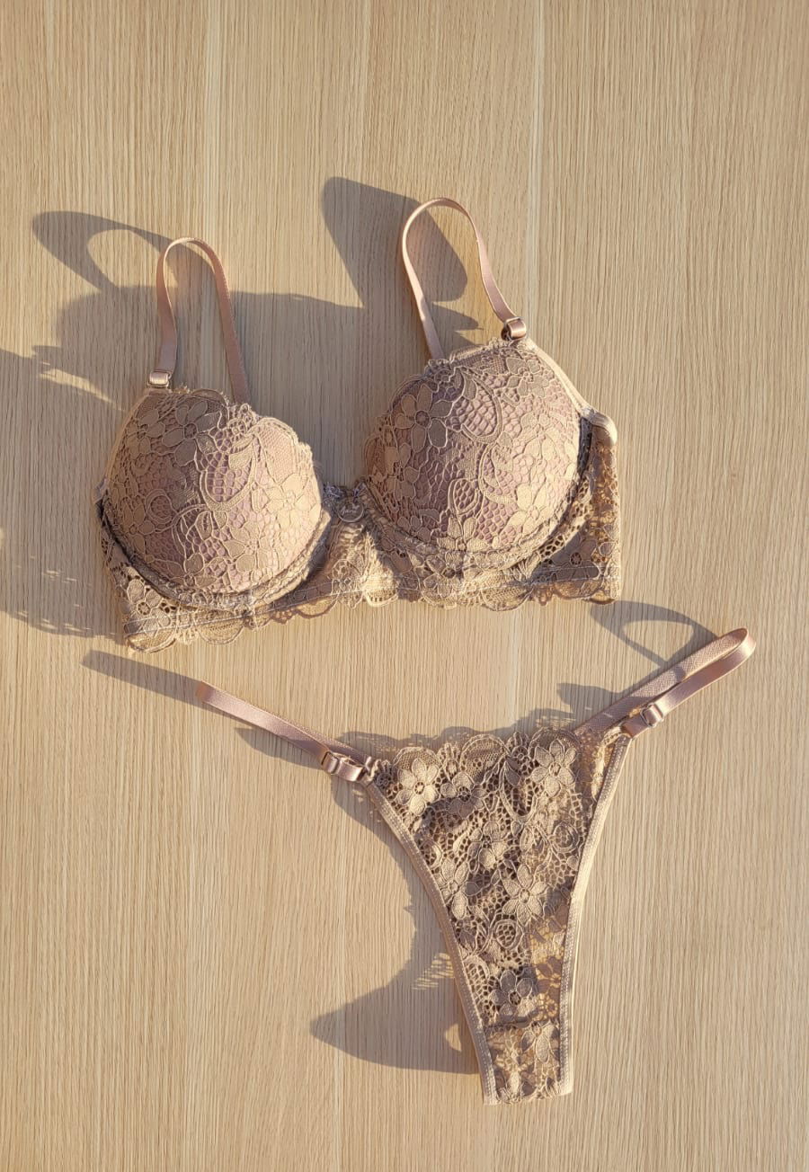 Conjunto regulable de encaje parte de atrás y adelante. Talles desde 85 a 100! Muy coquetos😉