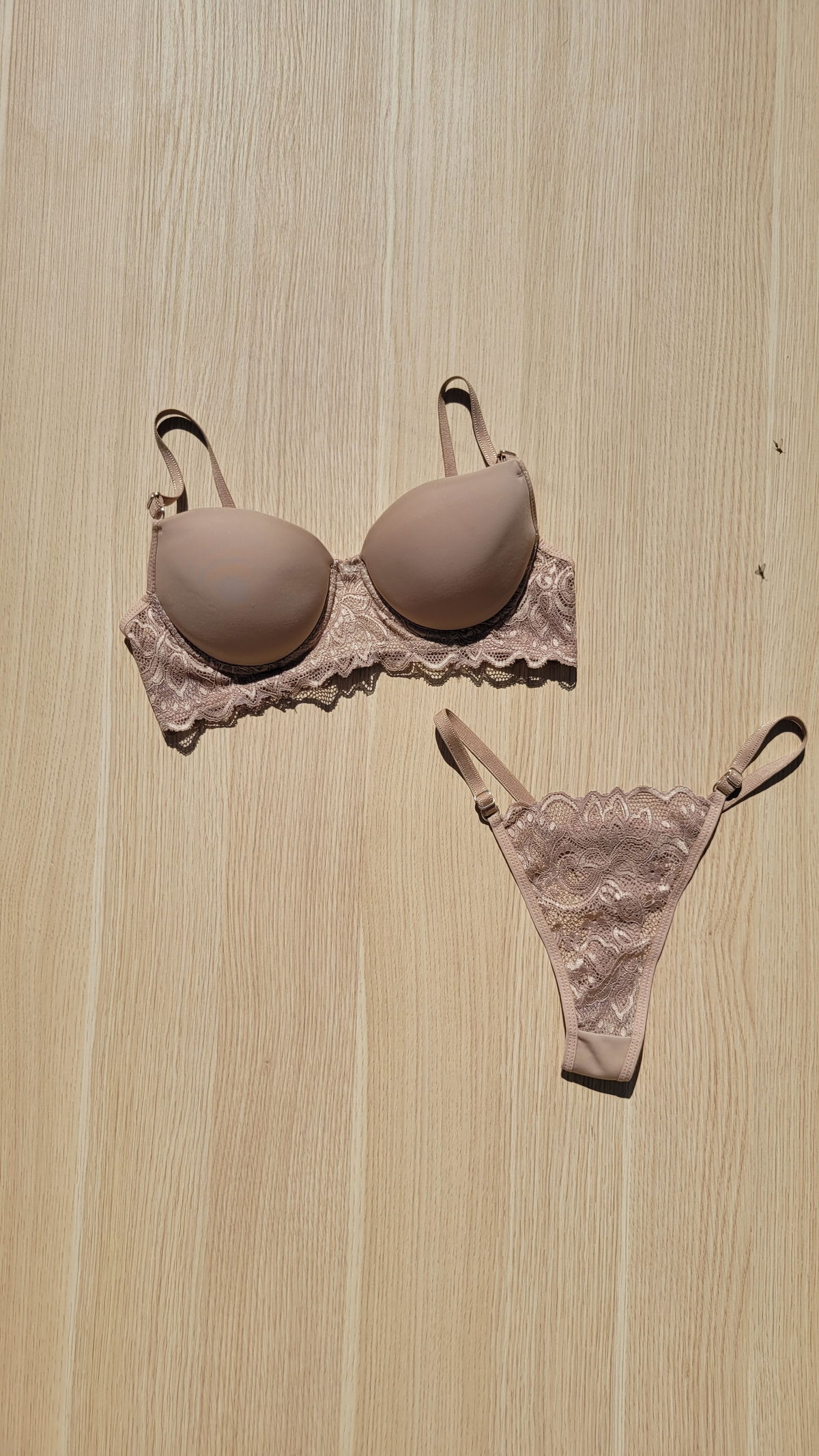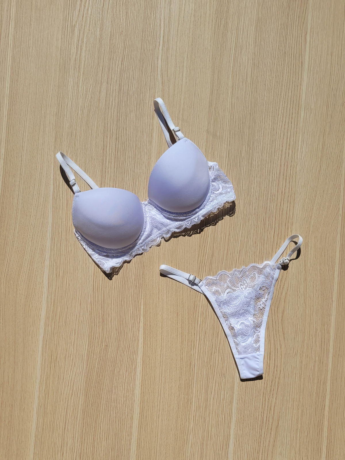Conjunto taza soft con relleno y aro. Parte de atrás del corpiño con encaje, parte del relleno con microfibra premium suave. Colaless regulable de encaje por adelante y microfibra por atrás. Súper cómodo y coqueto. Talles del 85 al 100
