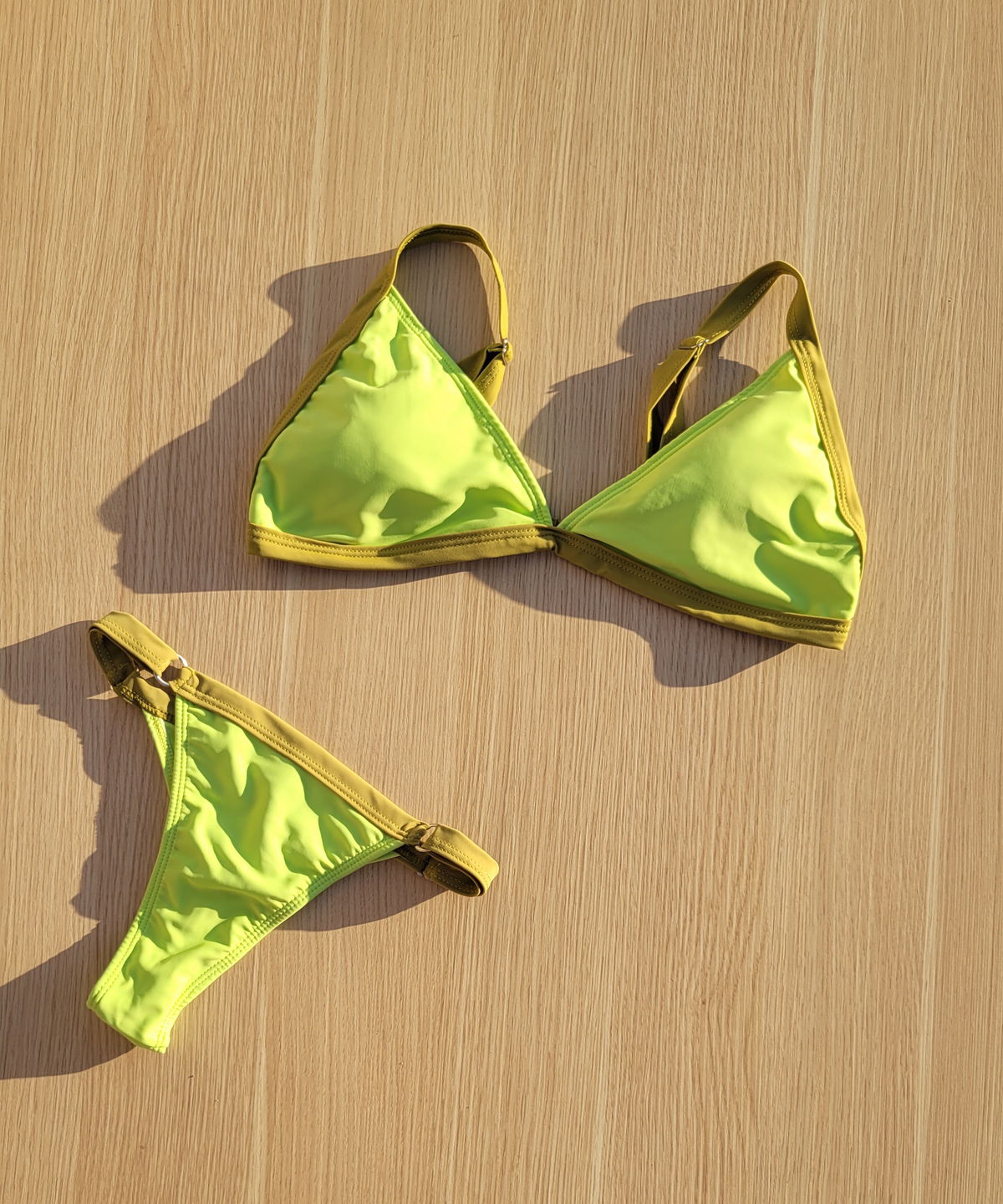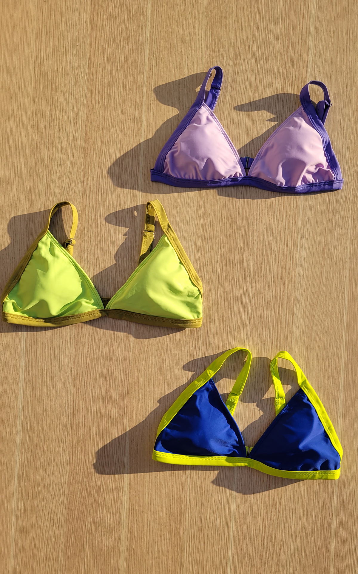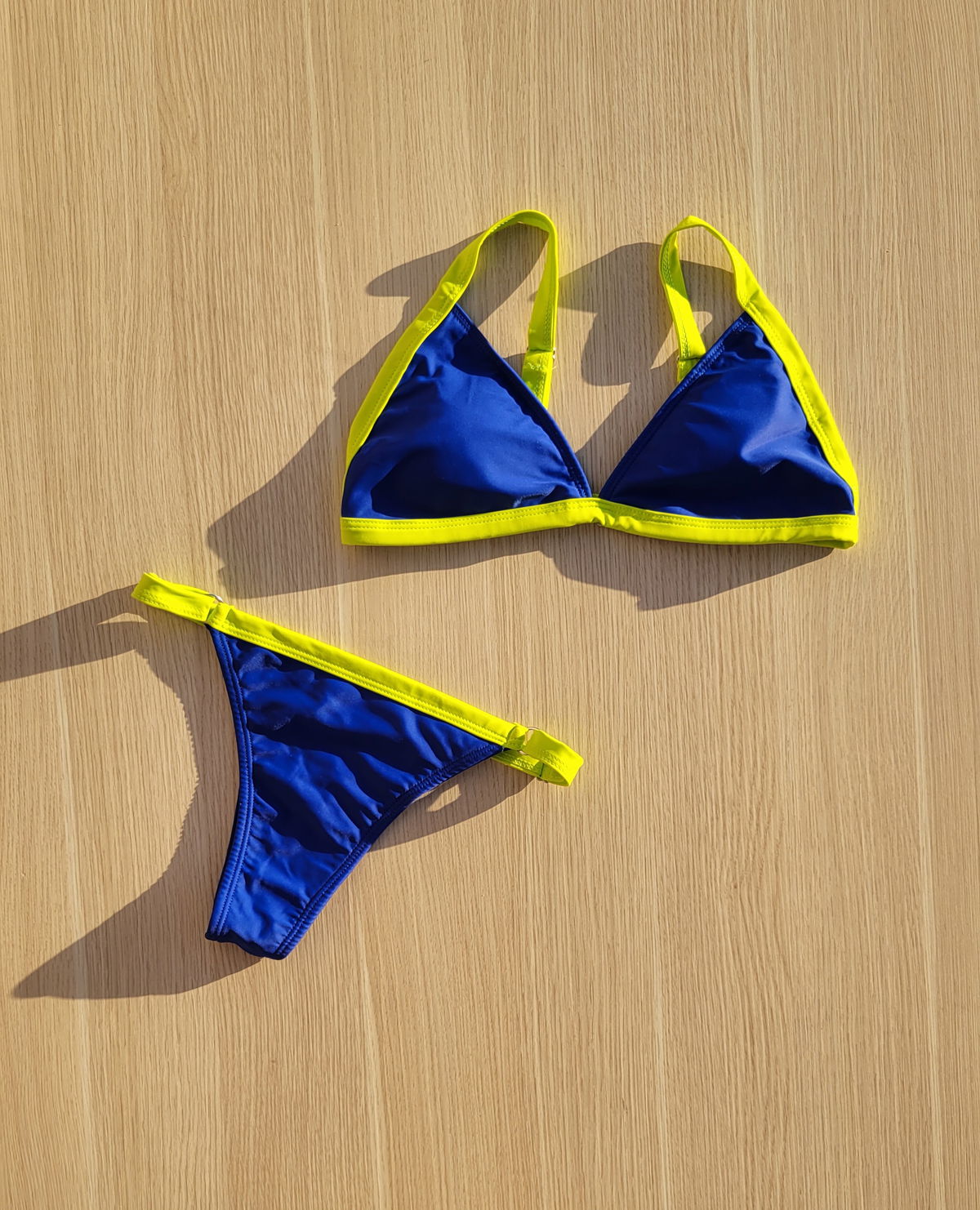 Bikini bicolor regulable con gancho en la espalda. Parte de costura de un color y tela de otro color. Colores en tendencia. Muy lindo calce🩷