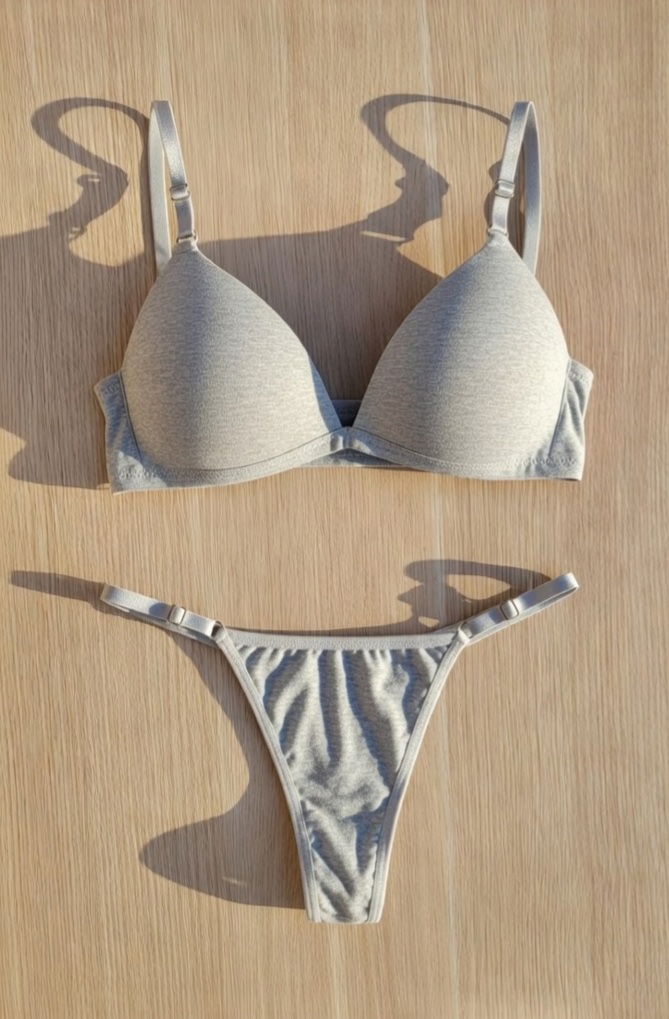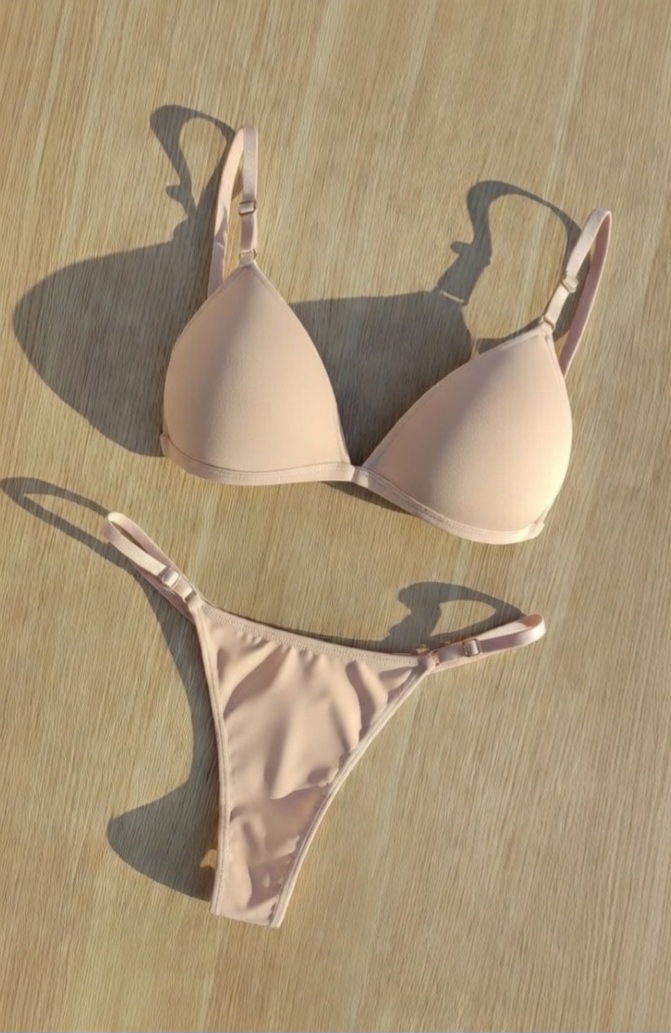 Conjunto con corpiño taza soft sin aro y con relleno. Bombi less regulable de algodón. Talles de 85 al 110