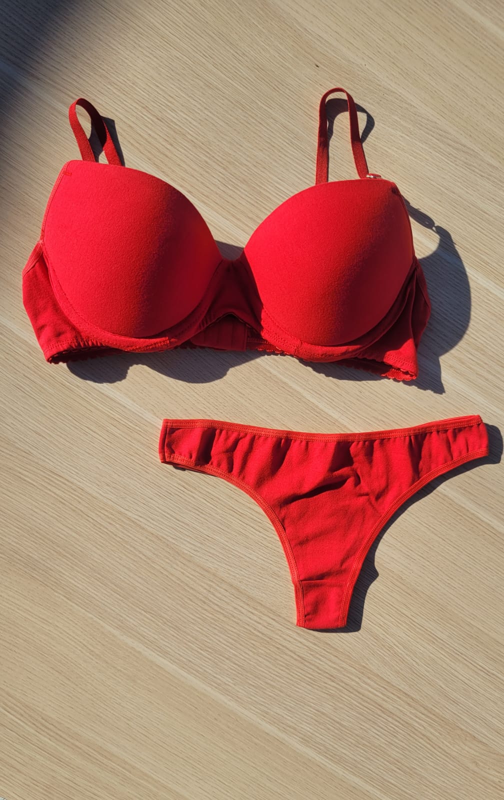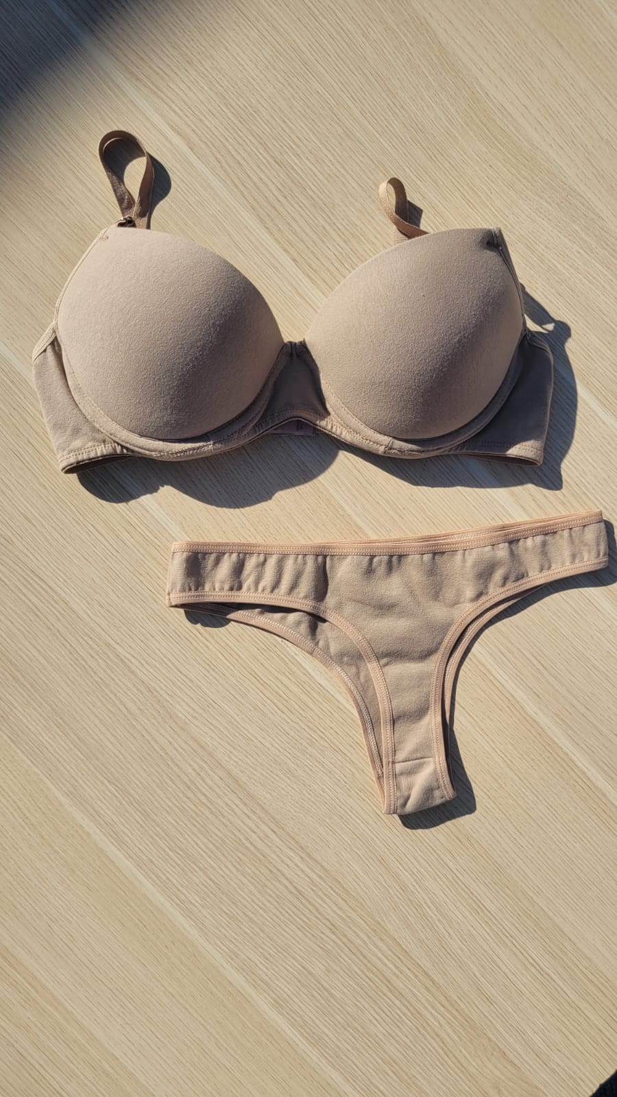 Conjunto de corpiño con aro y relleno, y bombi less común. De algodón, si buscas algo para el día a día, cómodo y lindo, ésta es tu mejor opción!!