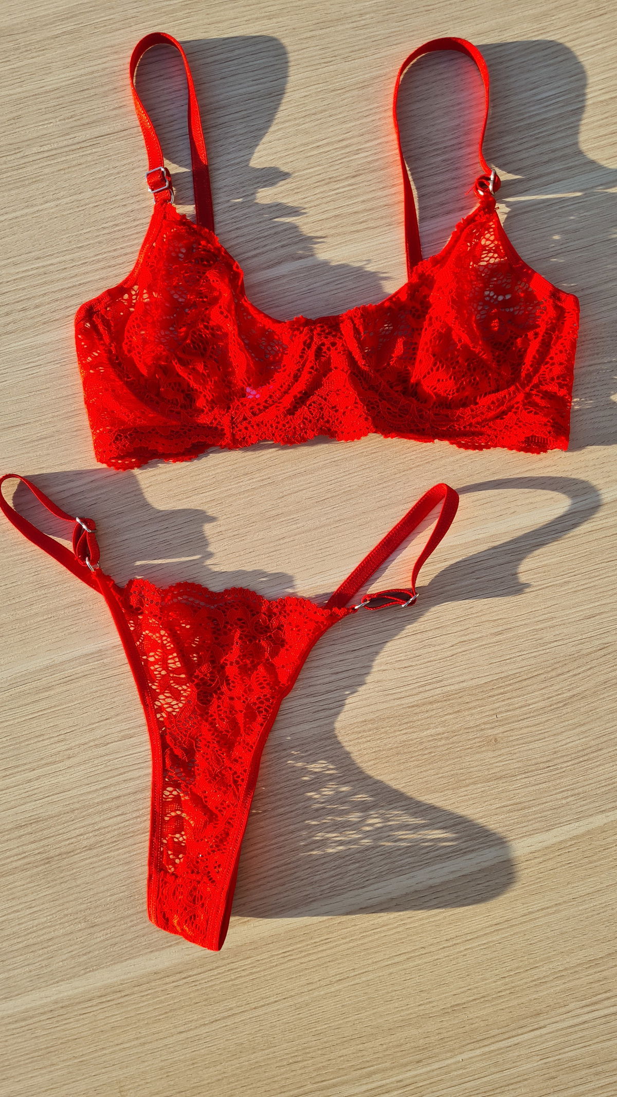 Conjunto de encaje súper cómodo. Bombi regulable de encaje, parte de atrás lycra. Corpiño con aro y sin relleno.